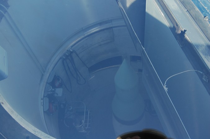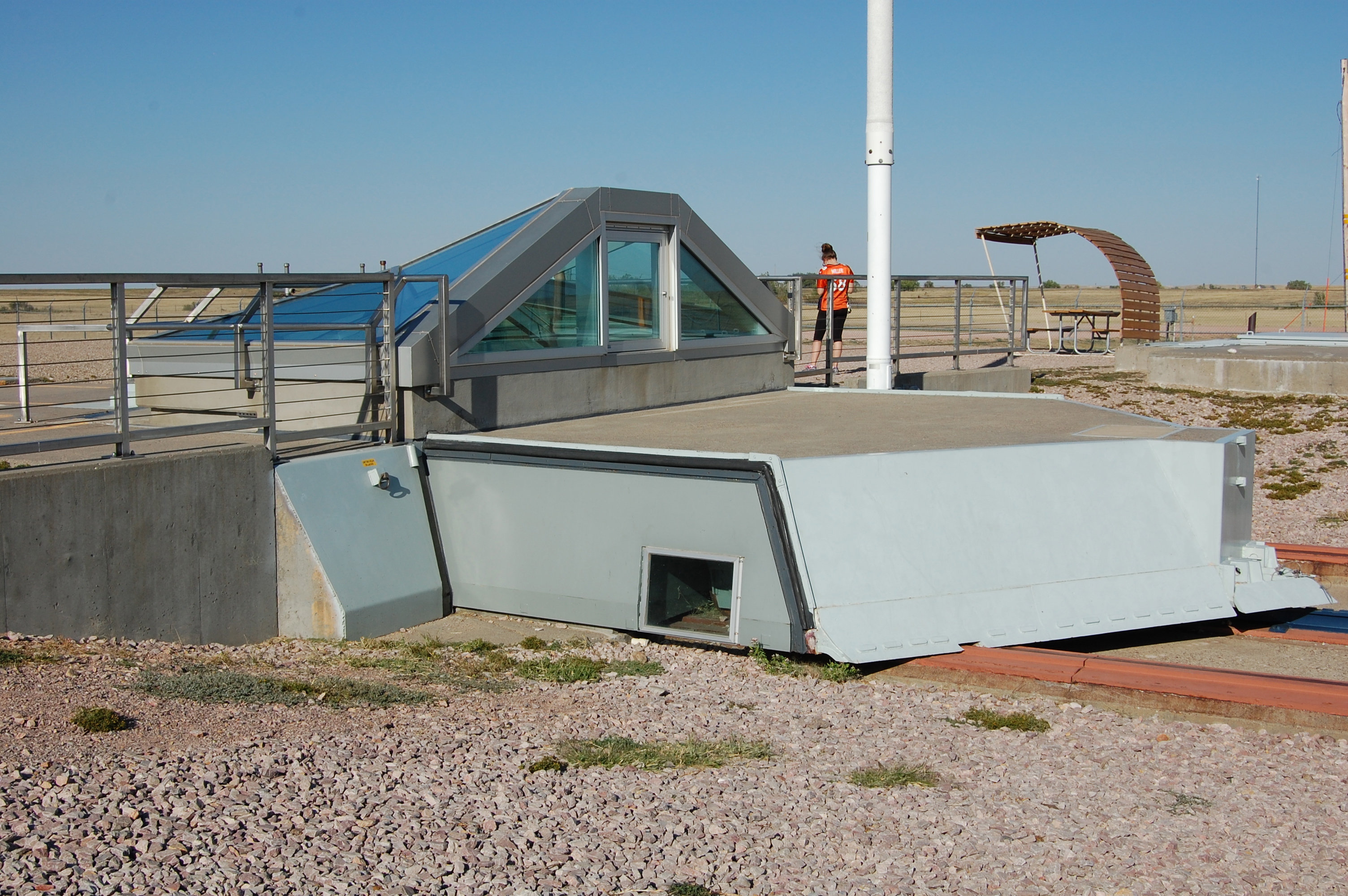 The launch door is partially opened and a glass cover is over it so you can see into the silo