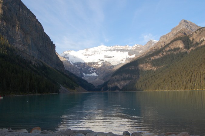 Got up early today, but slow getting around. Got away from the camper a bit later than I wanted to – I wanted to beat the crowds and thought it was my own damn fault. Got to Lake Louise (the actual lake and not the town) and was pleasantly surprised there was hardly anyone there for the first few minutes I was there. Had some cold but good quiet time at the lake and got a few pictures. I got out of there and headed for Moraine Lake.
