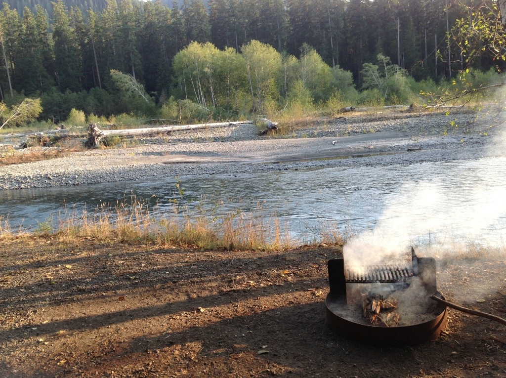 Tonight I sit on the banks of the Hoh River in Olympic National Park – one more place I can check off of my bucket list! It is a milky blue-gray from the glacial deposits and is quite relaxing to be camping next to. I finally am able to have a fire, so I had a burger and cooked some diced potatoes up with butter, onions, and spices. A damn tasty and filling meal. I am keeping the fire going as long as I can – not much wood to burn and they are not selling any.