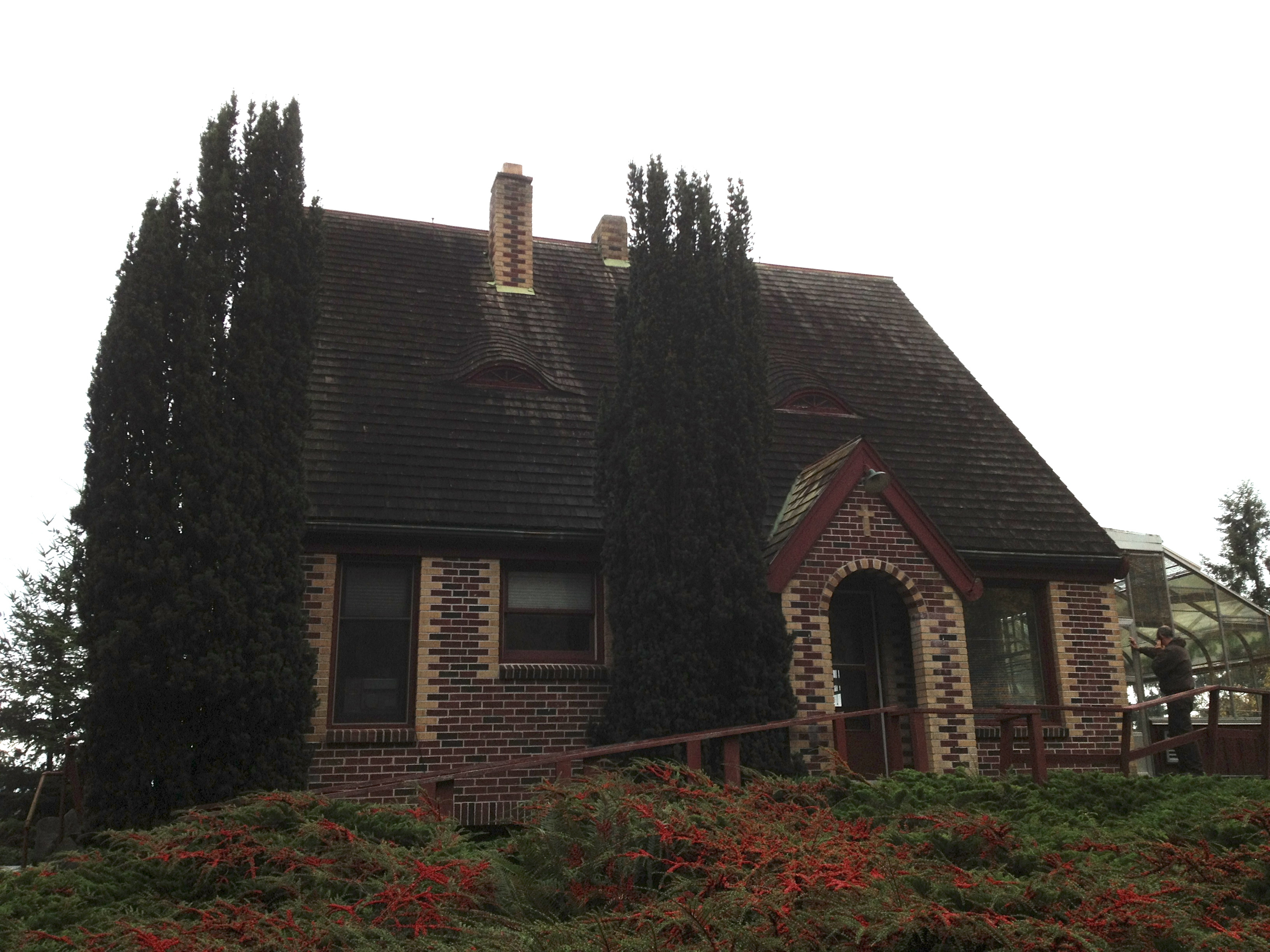 Check out the “eyebrow” windows in the roof – a very cool and rare feature. I believe the house was built in 1936. It is a pretty cool house inside and out. A caretaker lives in it to keep an eye on things so he has access to the fruit trees and bushes. I can go over and pick what I want as well when things come back into season. The apples are just coming on ripe and are quite good. I am not a big apple fan, but these are good ones.