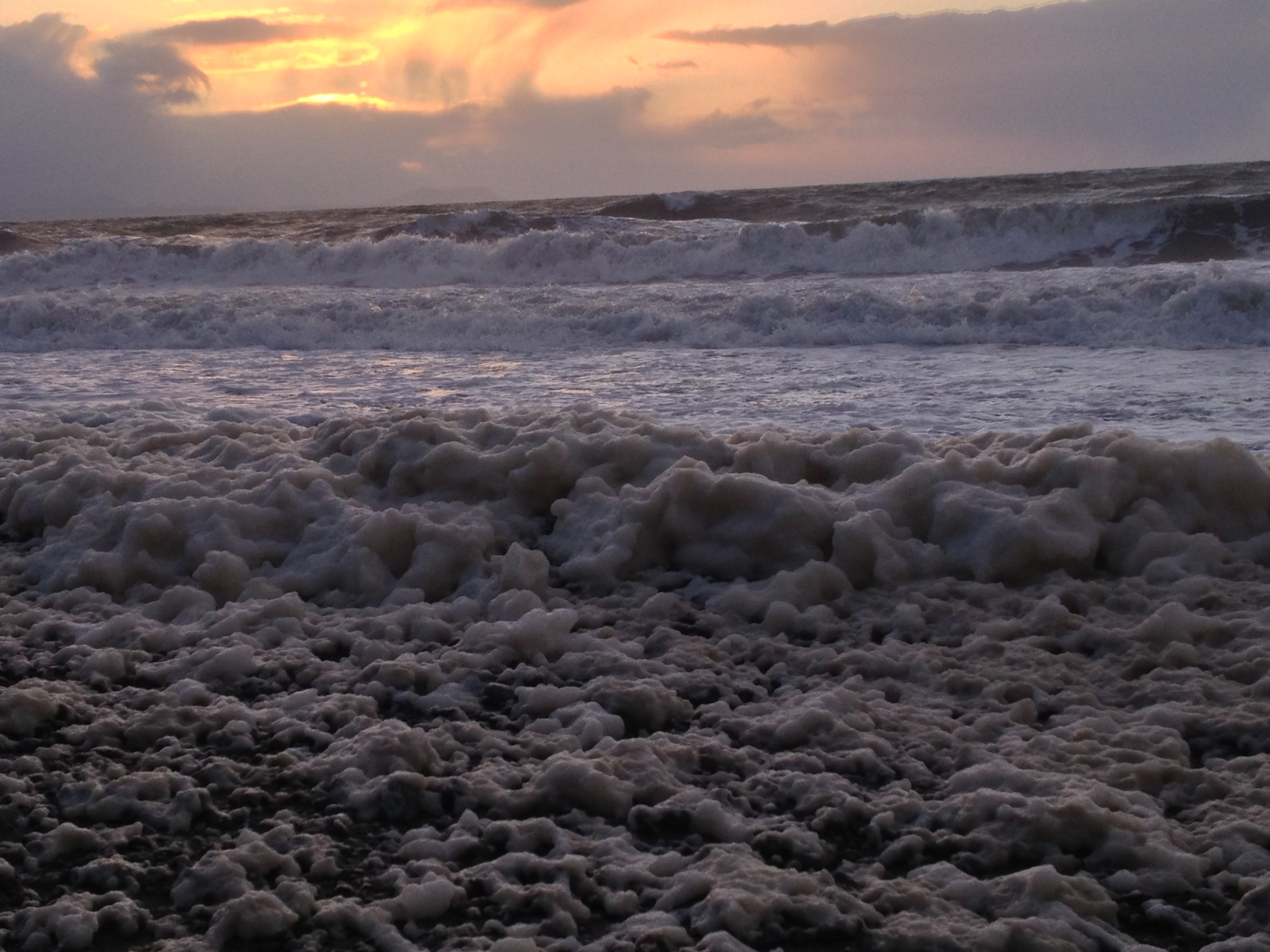 This evening I went down to check on a few things on The Spit. The storms are on their way – we are expecting a temperature drop, winds, rain, and even some damn snow down at 500 feet. Good thing I am at 87! It was pretty breezy when I was down there, and the seafoam is really kicking up: