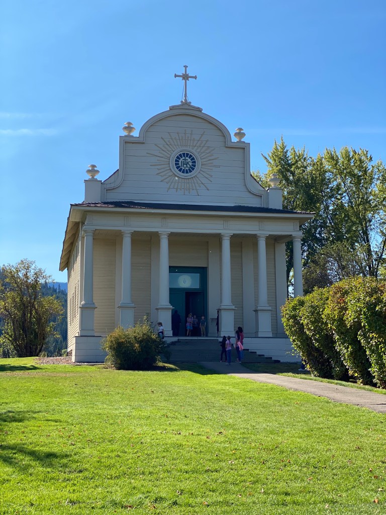 I have driven this highway several times and have been wanting to stop and see the Cataldo Mission, the oldest building in Idaho. With the weather being cool enough the dog waited impatiently in the car while I went in the building.