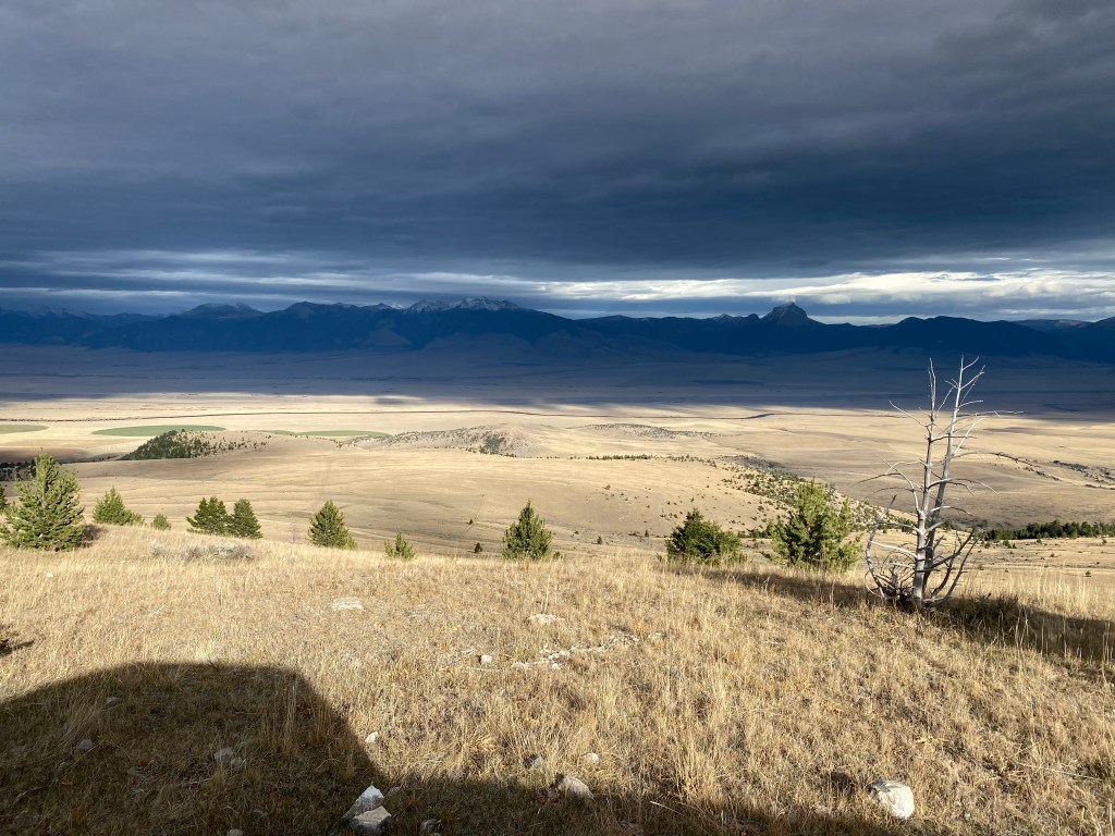 Looking east over the valley south of Ennis, MT; the peak to the right of center is Sphinx Mountain