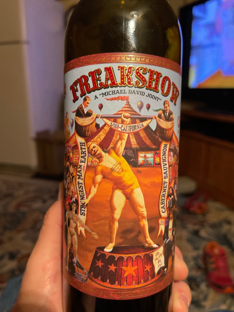Meghan was here last week and we cracked open this bottle of a new wine I bought called “Freakshow”. This is a bold, delicious Cab with a lot of body and flavor and it’s wrapped in a very cool label. I would definitely recommend this wine and I’ll buy it again. It was worth the splurge spending a few more dollars to try something new and interesting.
