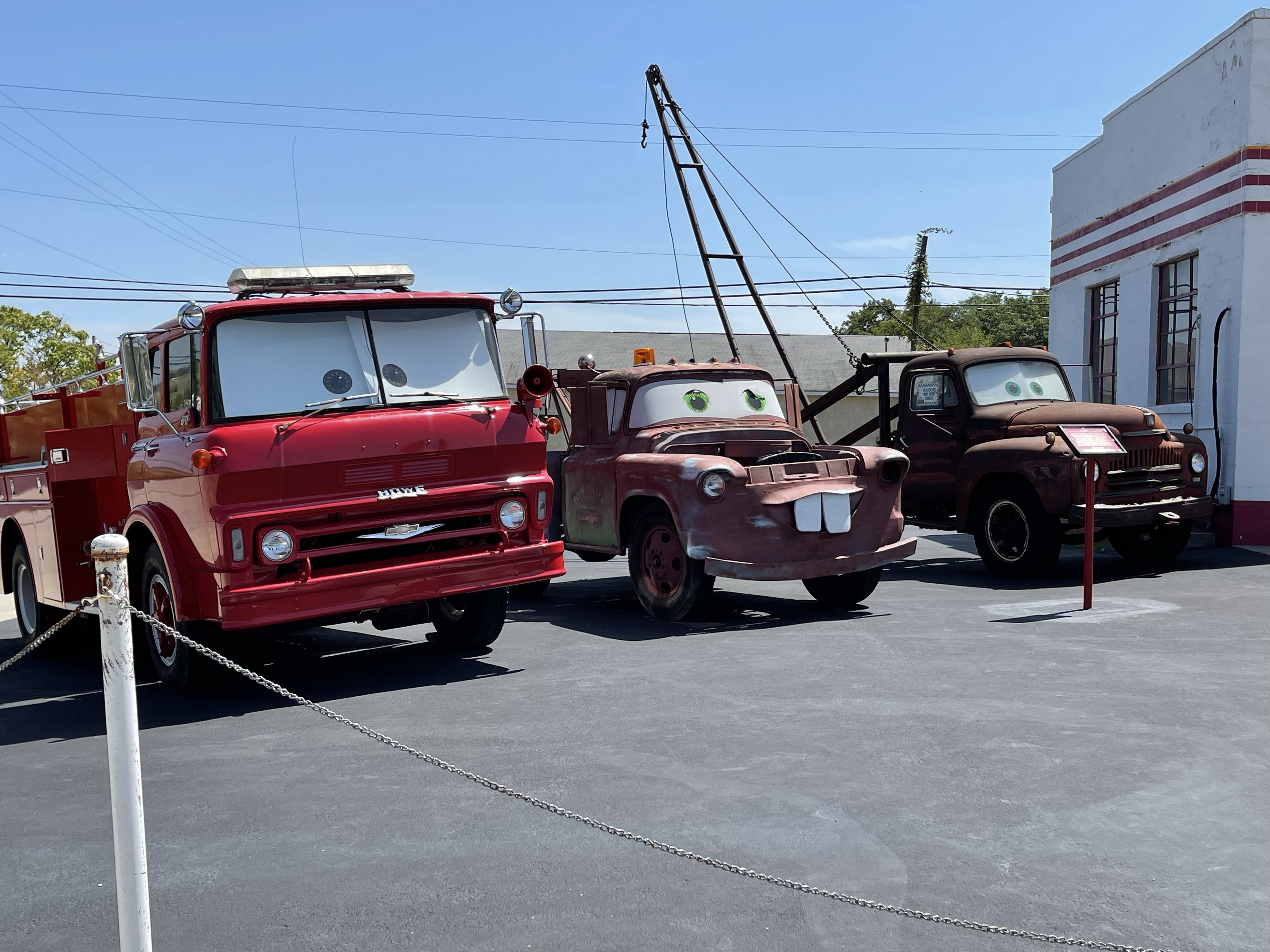 The truck on the right was the actual inspiration for the “Mater” character hilariously voiced by Larry the Cable Guy