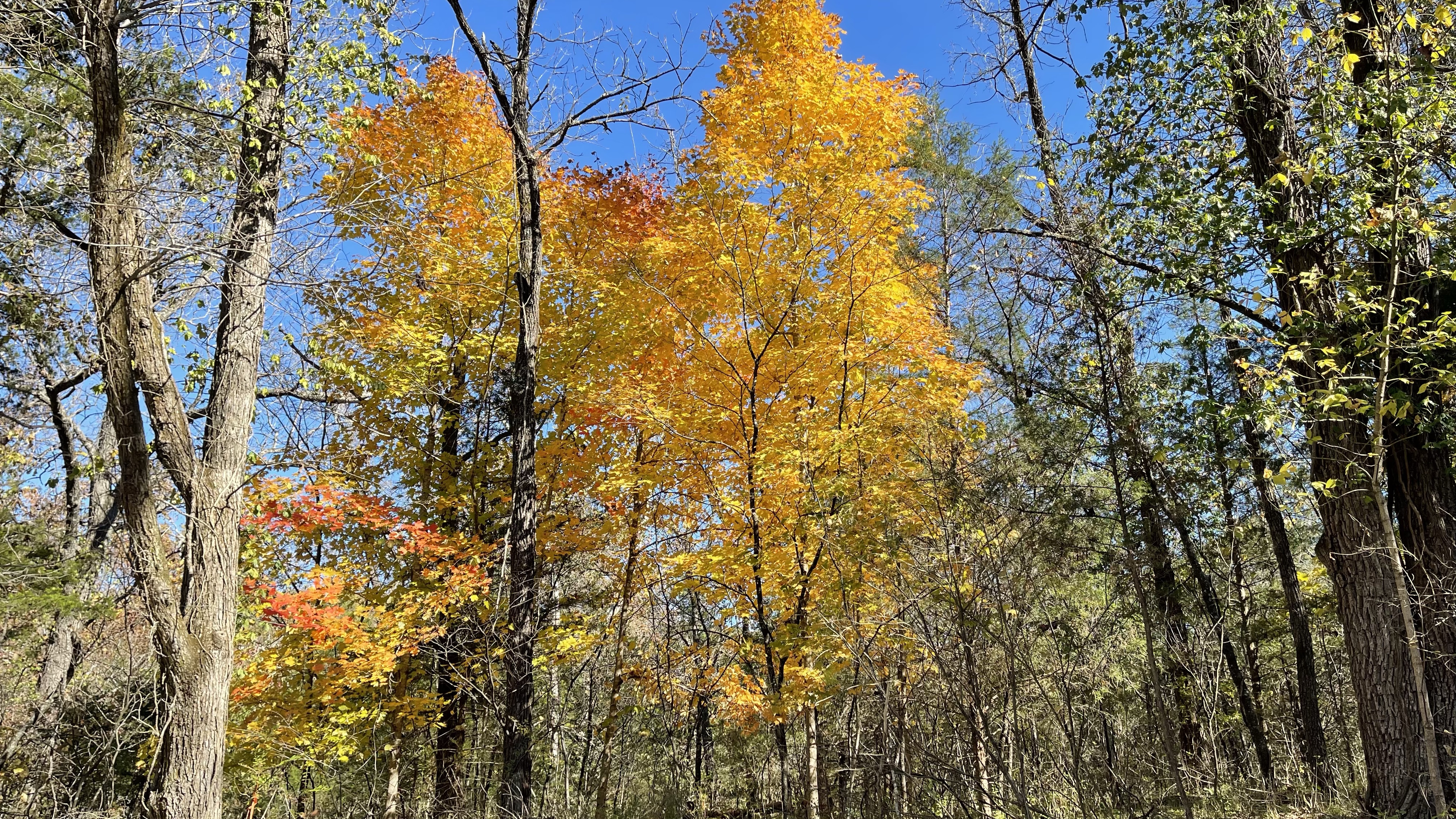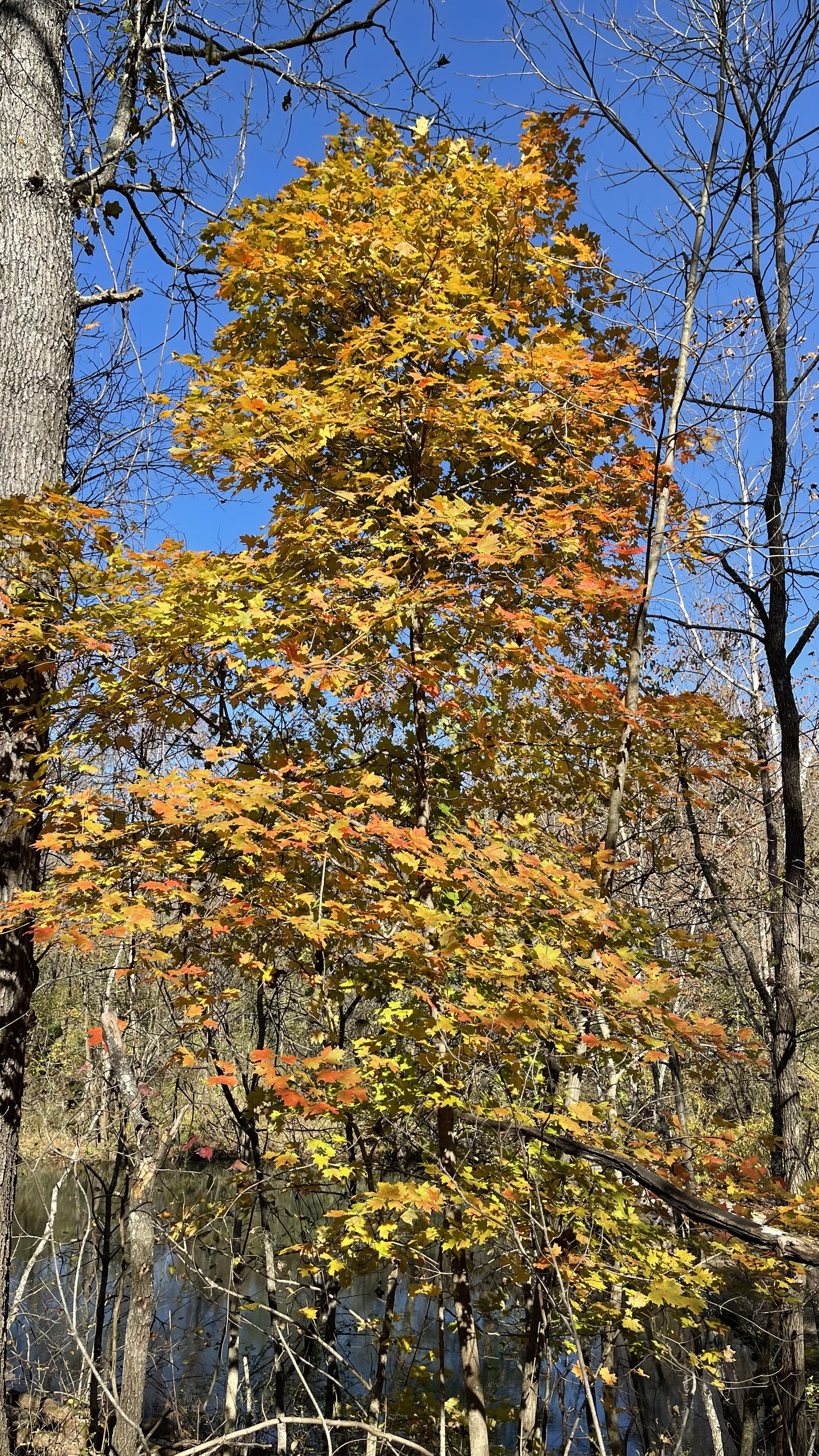 With the drought conditions in this area this summer the trees have been pretty underwhelming with Fall colors from what I have seen. I did see a few exceptions today, though.