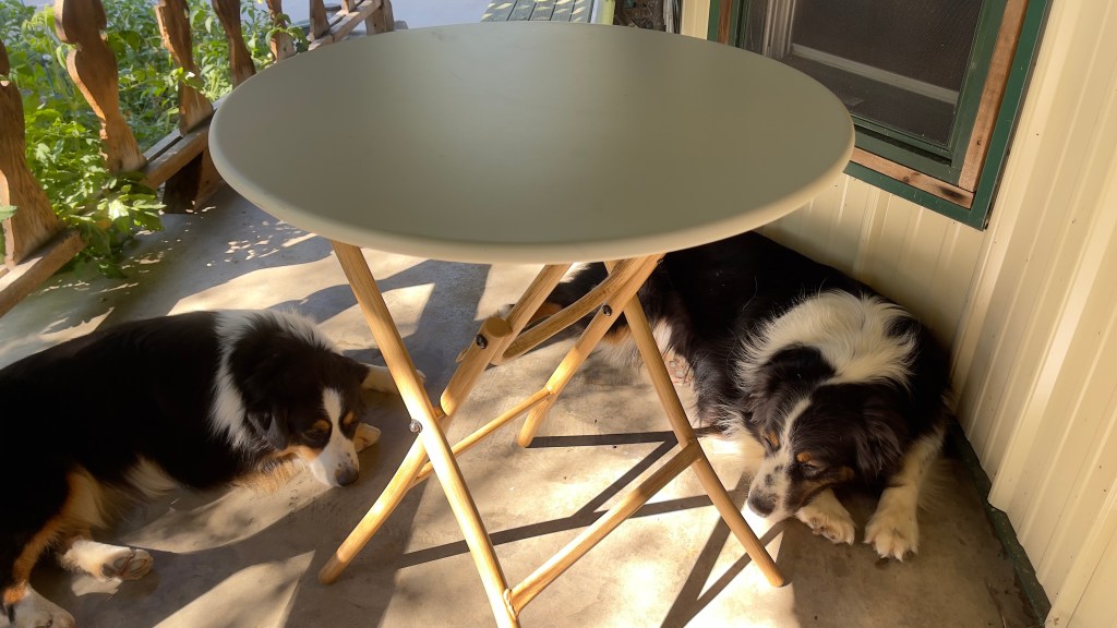 It was a good deal and since I’m in there often the lady who owns the place knocked another $5 off of it for me. I need a couple of chairs that fit it so I’ll be on the lookout for some of those in a thrift or outlet store. I told her that it’s perfect for morning coffee on the porch or wine in the evening…or even wine in the morning!
