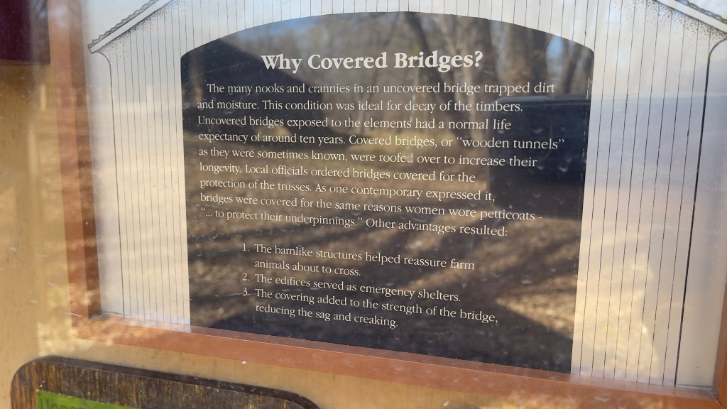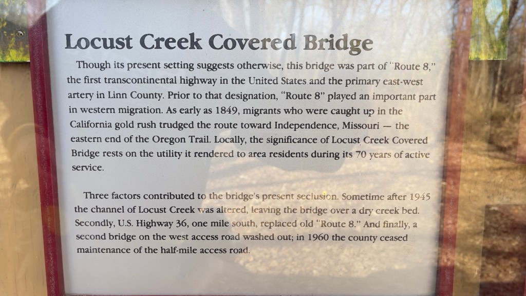 Locust Creek Covered Bridge eluded me all those years ago, but there is now excellent signage showing the way.