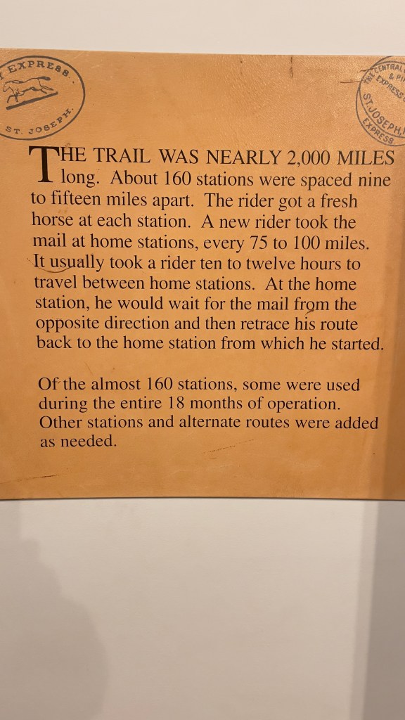 St. Joseph has quite the history, being the birthplace of legendary newsman Walter Cronkite, actress Jane Wyman, and the Cherry Mash candy bar. Buffalo Bill Cody and Samuel Clemens (Mark Twain) spent time in the area and I had no idea they both rode for the Pony Express. One thing I had on my list of places to see was the Pony Express Station in “St. Joe” as it is sometimes called.