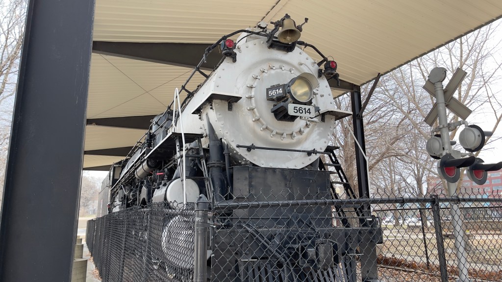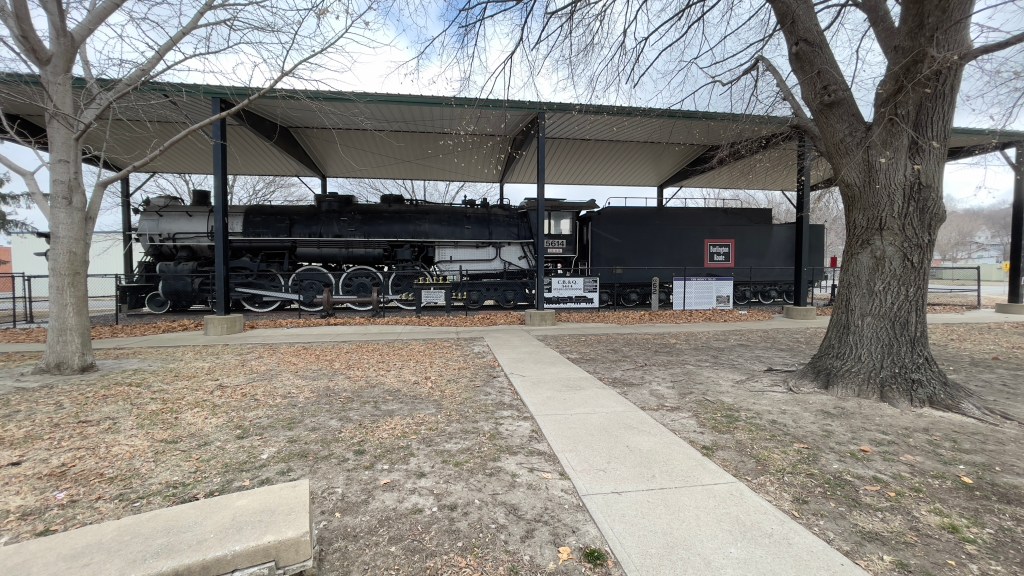 Across the street from the museum is a city park that has a huge stream locomotive in it. I do like history and I do like old trains. Of course I had to go check that out.