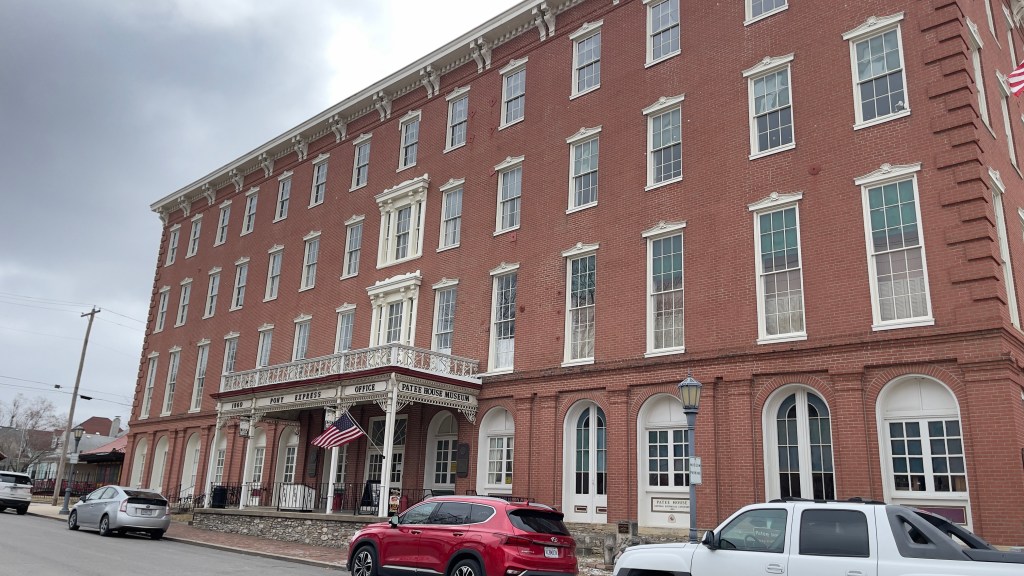 I circled back around the block, went a block north then turned east. I saw a blue sign along the street for the Patee House Museum and Jesse James’ house (odd, since brown is usually for historical places). I drove up the hill and there it was – a pretty big old hotel building.