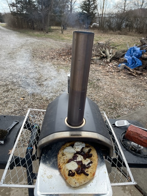 I did cook a pizza in the Ooni last weekend and it turned out good. Fresh mozzarella, sun-dried tomatoes, Kalmata olives, and a splash of two different olive oils.
