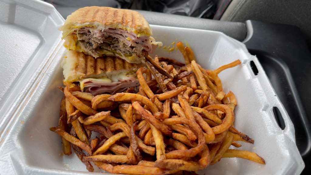 I walked a few blocks down the street and placed my order – a Cubano & fries. It’s officially now a splurge day.