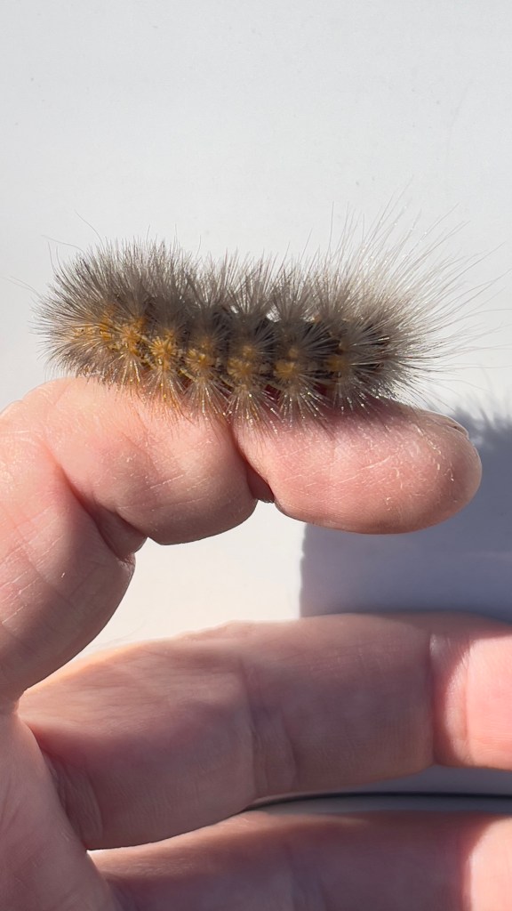 Look how long his hairs are! Usually the thinking is the more furry the caterpillar the colder winter will be, but I am not sure if it is all caterpillars or just the wooly one (which this isn’t). Let’s hope he just wants long hair and it’s not the cold.