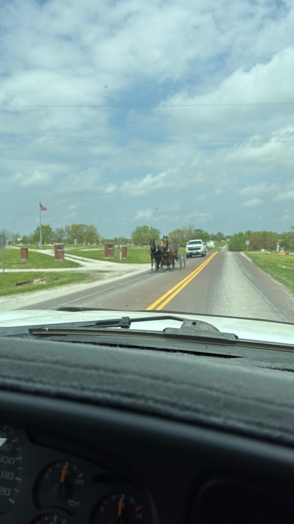 Day two and we have some sunshine today. After a couple of espressos I got the dogs out for a strut. Time for a trip to Jamesport for some Amish baked goods.