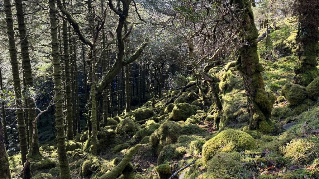 We got to the main trail and there was a slight, but long, uphill section or two. There were one or two steep uphills but overall a easy-moderate hike. The first part of the trail reminded me so much of Washington State. I worked and hiked in parks and forests there and it was quite similar. Moss everywhere, covering rocks, trees, grass…everything. Just like the PNW. So incredibly beautiful and took me back to those times.