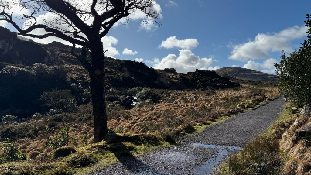 The leader was talking about the trail and told us where the waterfall was. He talked about the name Torc and said it is the Irish word for a wild boar that used to inhabit the area. He then pointed out another landmark and talked about the history. We said our good-byes and went our respective ways.