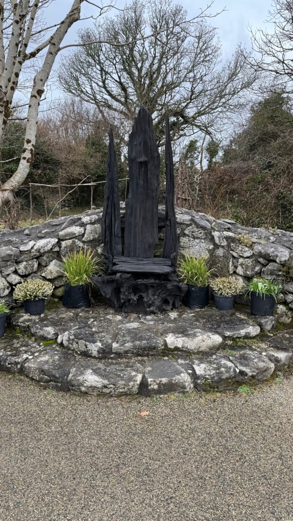 We head back south and I made a mental note of a sign for “Brigit’s Garden”. It was just down the road from the castle. I knew we needed to stop and have a look so I turned onto the road and we drove past more extensive storm damage. When we got to the place the lady told us the power was out for a few weeks or something like that.