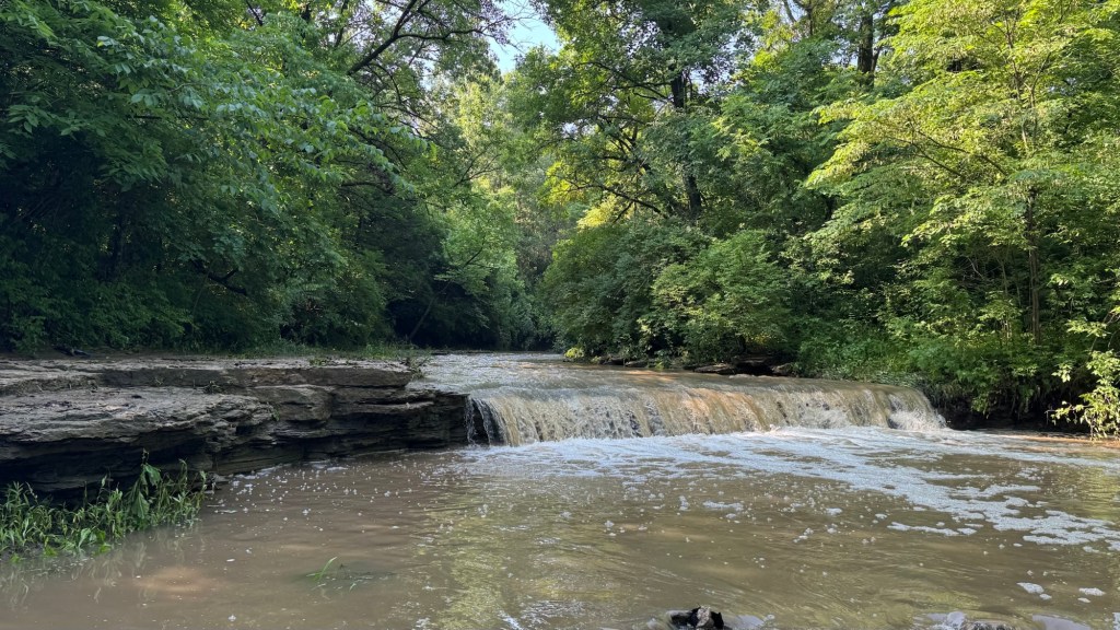 Then, I made a stop at a little trailhead in Lansing. It is called Seven Mile Creek and is 1.2 miles long total. I did about half, as I was on a mission to get the yard work done and out of the way. Halfway is about where the waterfall is, and was what I wanted to see after all the rain we had. It did not disappoint.